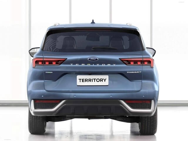 Bước ra phía sau, Ford Territory Titanium và 2 phiên bản còn lại có thiết kế tương tự giống nhau trông hiện đại. Thiết kế đèn hậu Led hình L nằm ngang trông bắt mắt và nổi bật với dòng chữ “TERRITORY”.